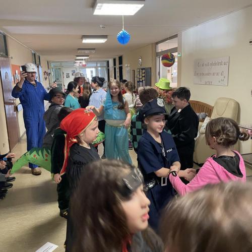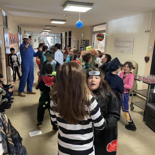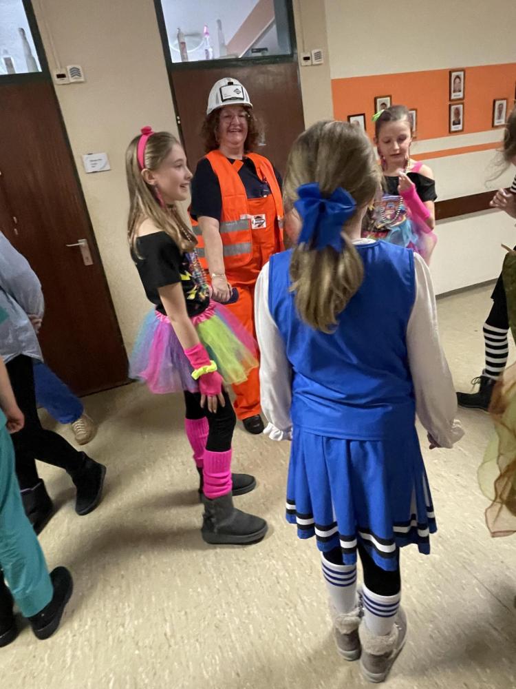 Am Faschingsdienstag wurde es im Altersheim besonders bunt und lebendig: Die Kinder der Volksschule Angedair verteilten sich auf alle sechs Wohnbereiche und sorgten für ausgelassene Stimmung.