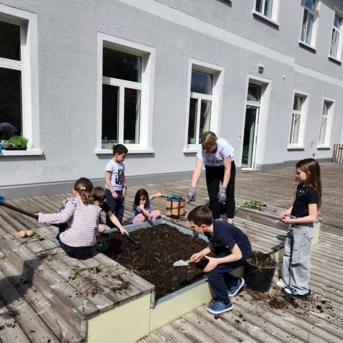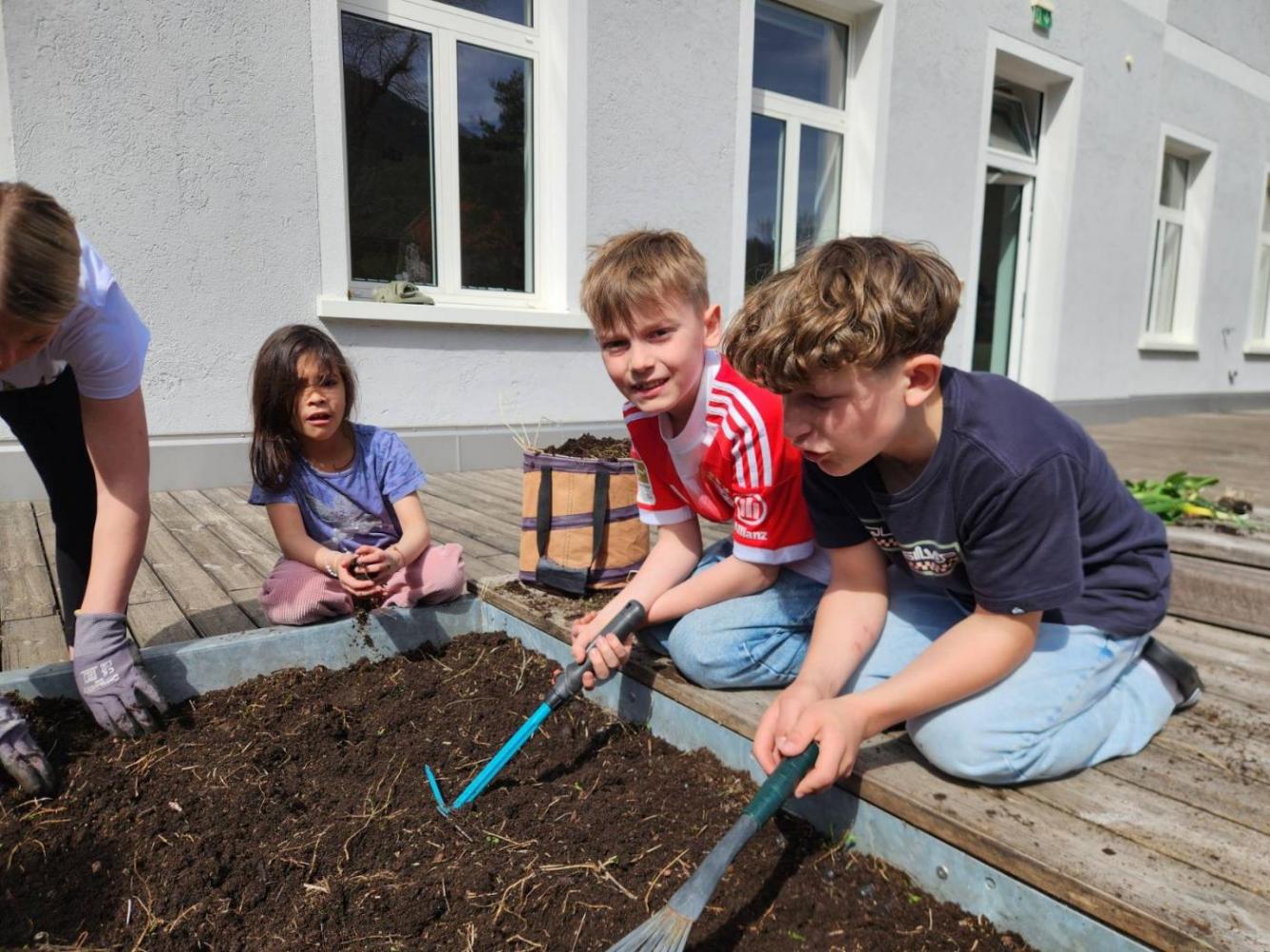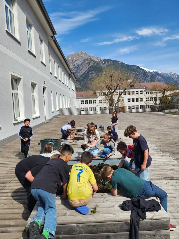 Gartenaktion von Margit Strolz 09. April 2026 3m 2025/26 Gartenaktion: Die 3m Klasse hat heute auch ihr Hochbeet neu bepflanzt! I Mit viel Eifer wurde gejätet, gehackt, umgestochen, gerecht, gegraben, gesät, gepflanzt und gegossen!