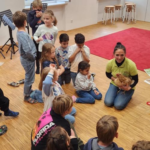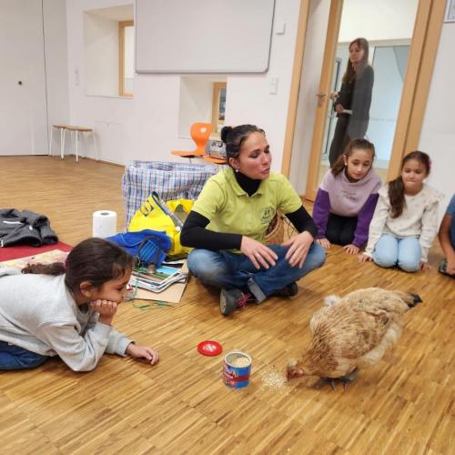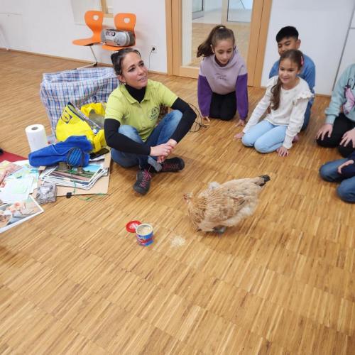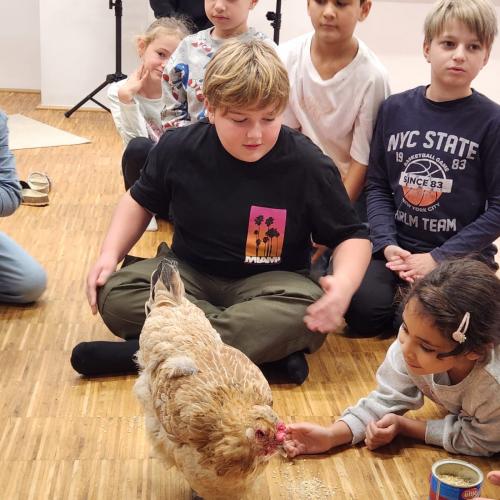 Die Bäuerin Burgi und ihre Henne Henriette waren in der 3m Klasse zu Besuch.
