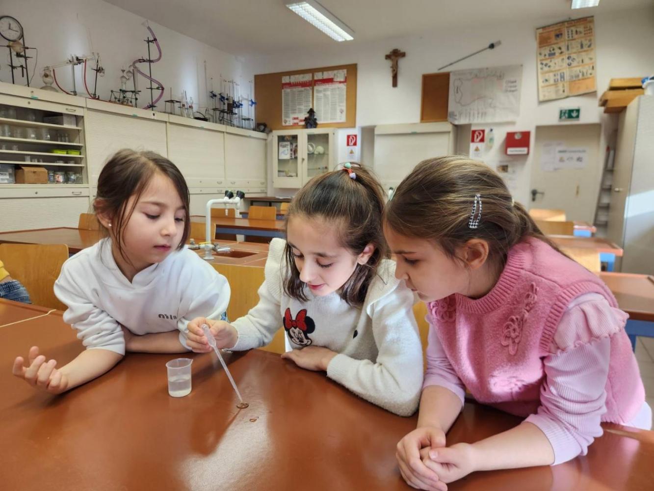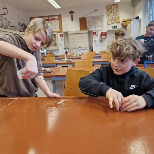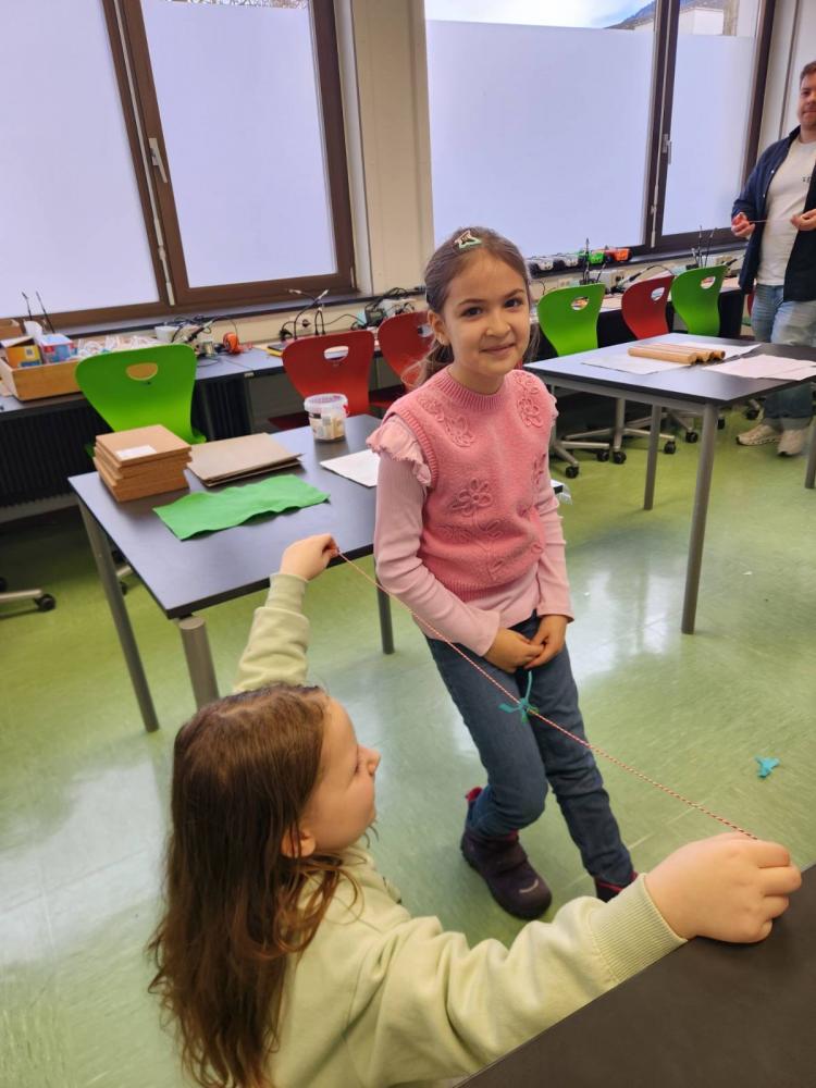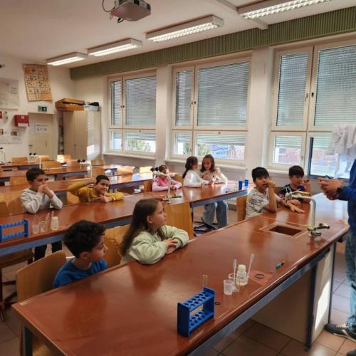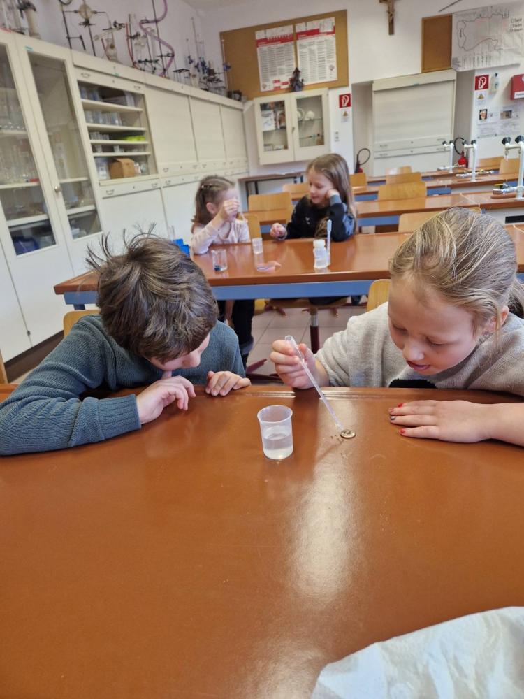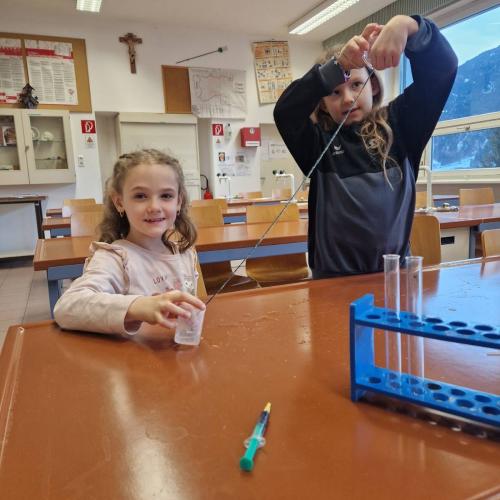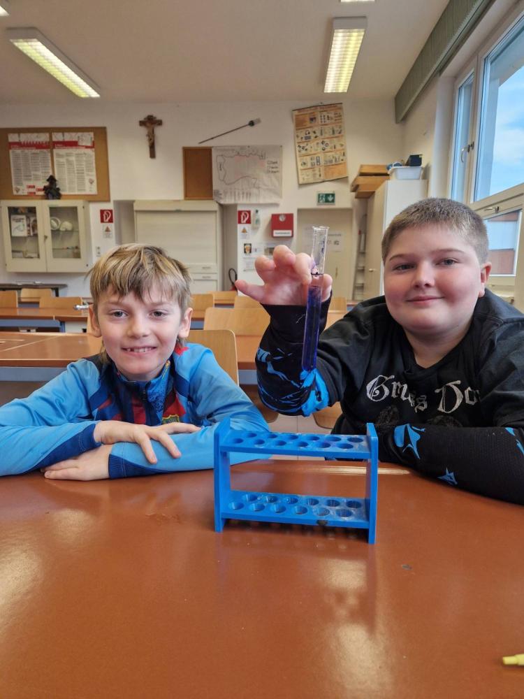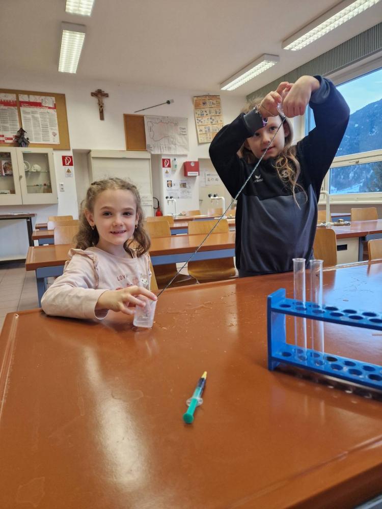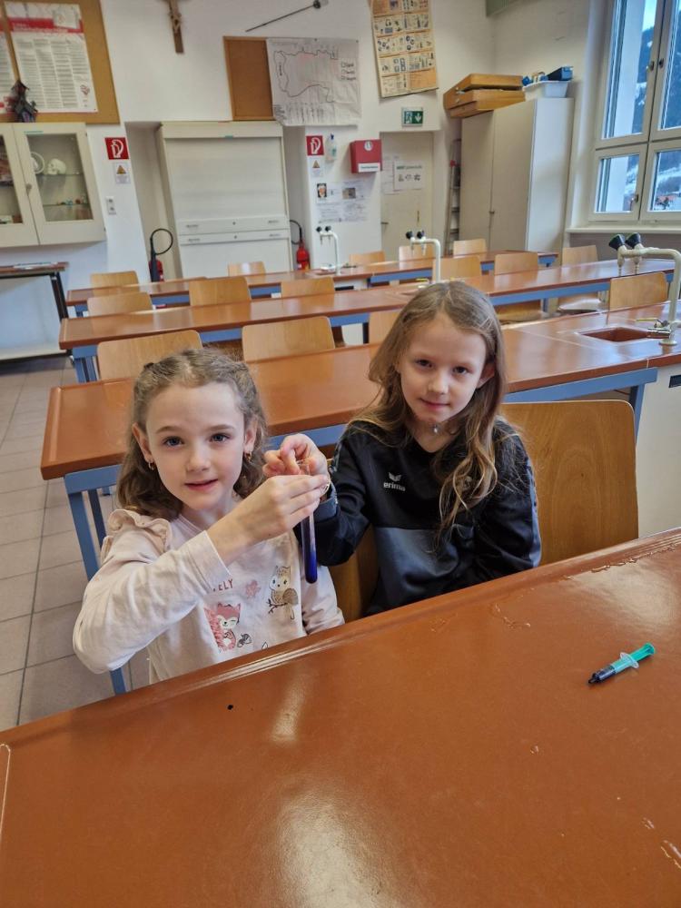 Die 3m durfte am Mittwoch, den 15.Jänner einen richtig spannenden Vormittag am Gymnasium in Landeck erleben. Mit großer Neugier probierten die Kinder im Chemielabor verschiedene Versuche mit Wasser aus und staunten über die Ergebnisse. Im Mintlab experimentierten sie begeistert weiter und führten die physikalischen Aufgaben mit viel Ausdauer durch. Besonders toll fanden die Kinder das Herstellen eines einfachen Holzspiels mit Hilfe eines 3D-Druckers. Der Vormittag machte allen viel Freude, war abwechslungsreich und die Kinder waren mit großem Interesse und Begeisterung dabei.