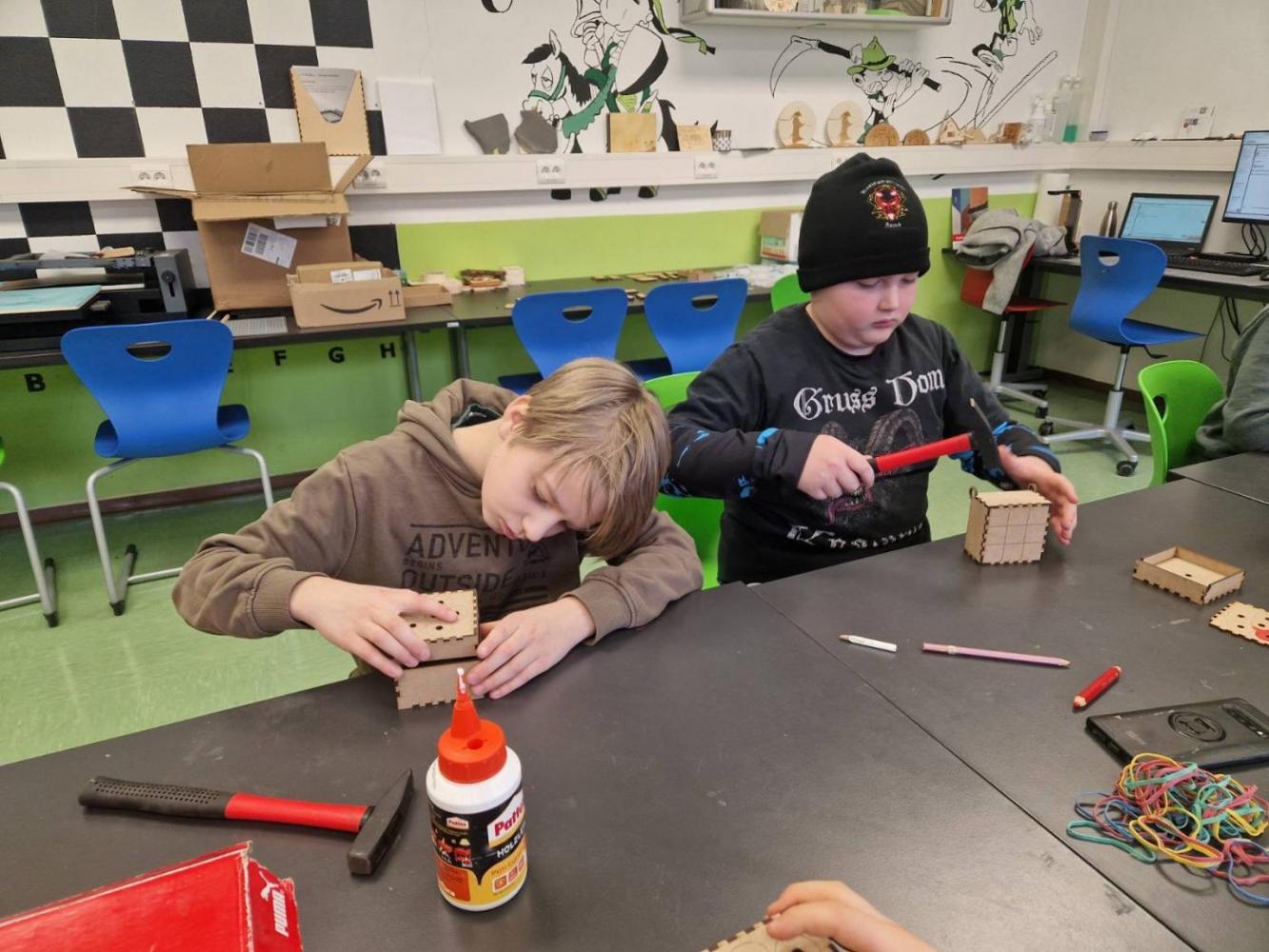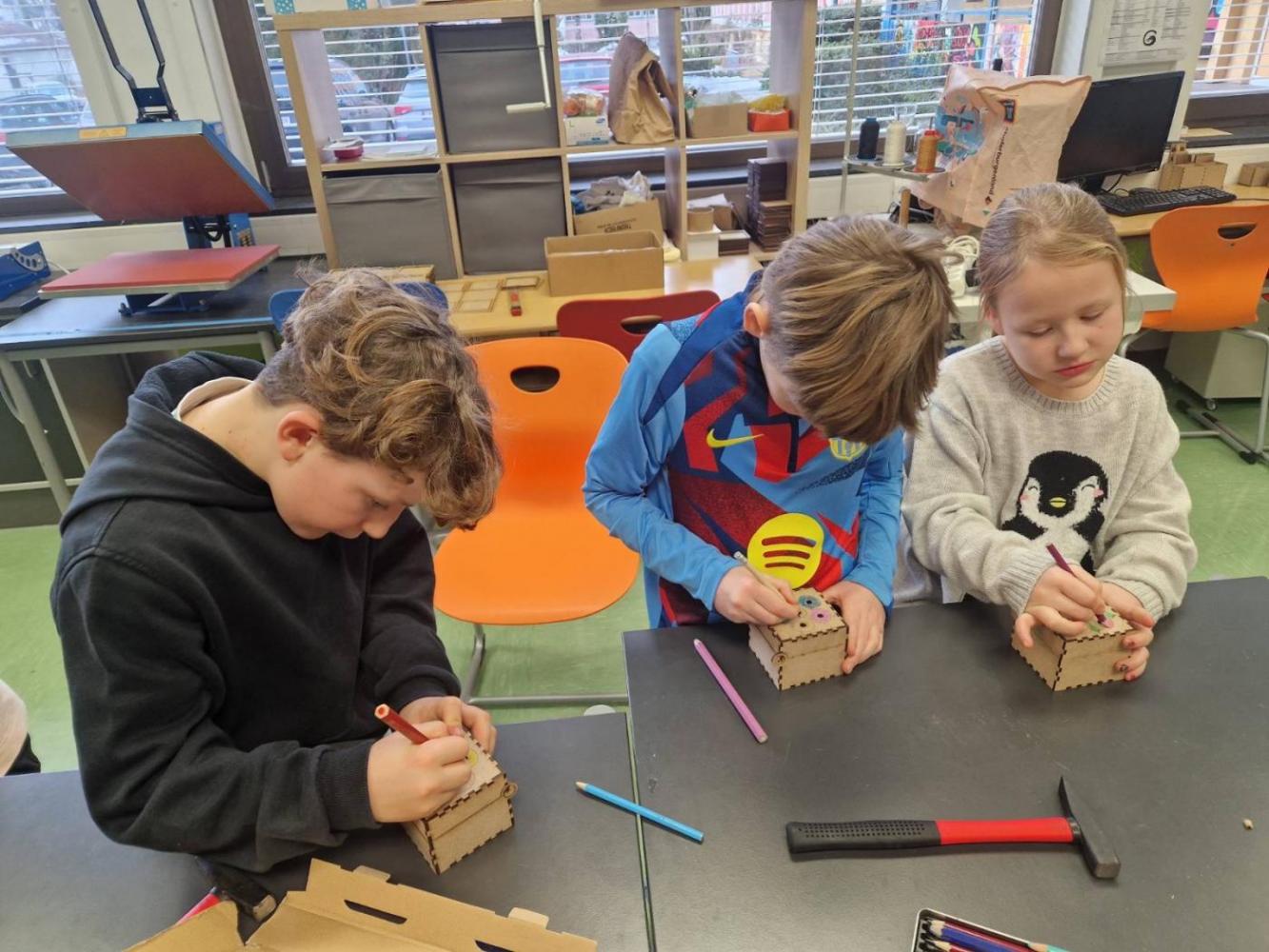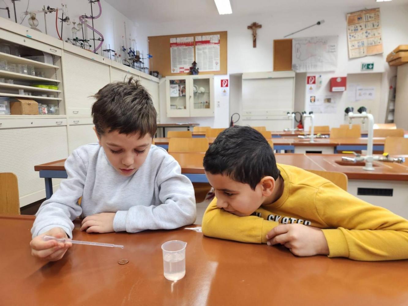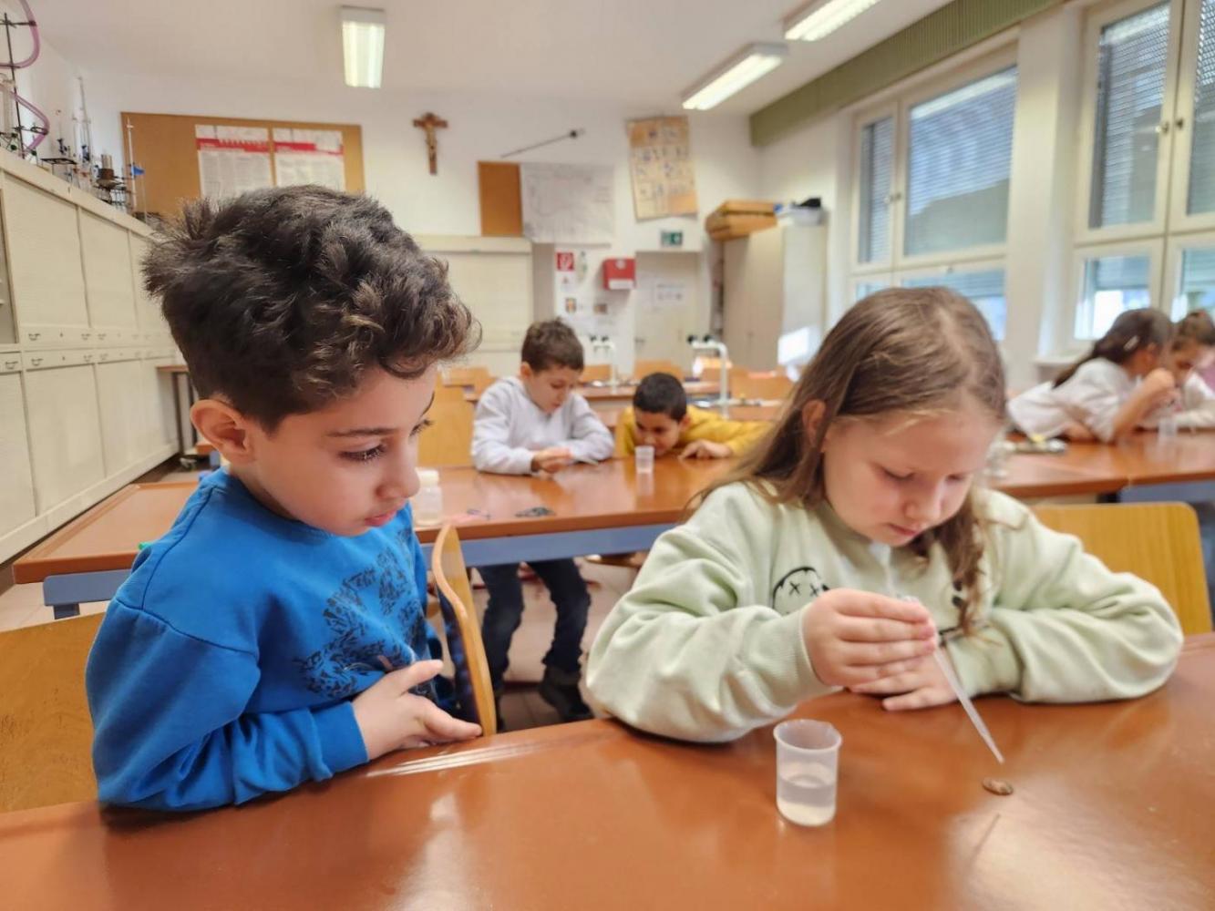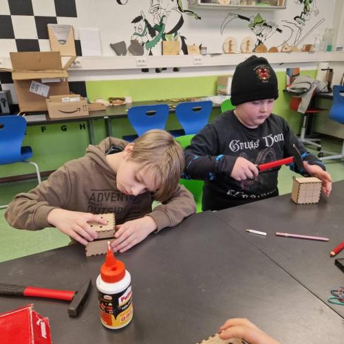 Die 3m durfte am Mittwoch, den 15.Jänner einen richtig spannenden Vormittag am Gymnasium in Landeck erleben. Mit großer Neugier probierten die Kinder im Chemielabor verschiedene Versuche mit Wasser aus und staunten über die Ergebnisse. Im Mintlab experimentierten sie begeistert weiter und führten die physikalischen Aufgaben mit viel Ausdauer durch. Besonders toll fanden die Kinder das Herstellen eines einfachen Holzspiels mit Hilfe eines 3D-Druckers. Der Vormittag machte allen viel Freude, war abwechslungsreich und die Kinder waren mit großem Interesse und Begeisterung dabei.
