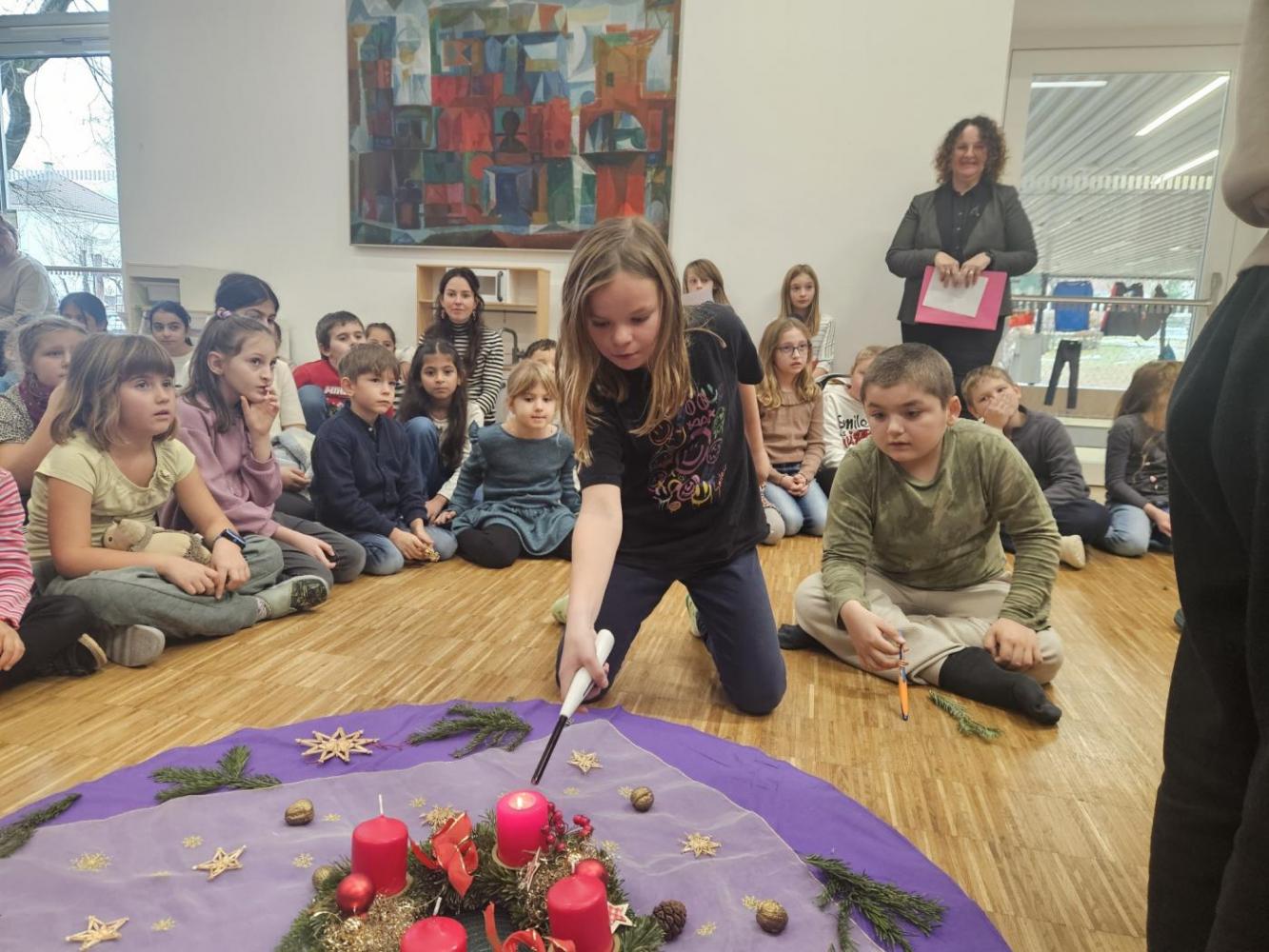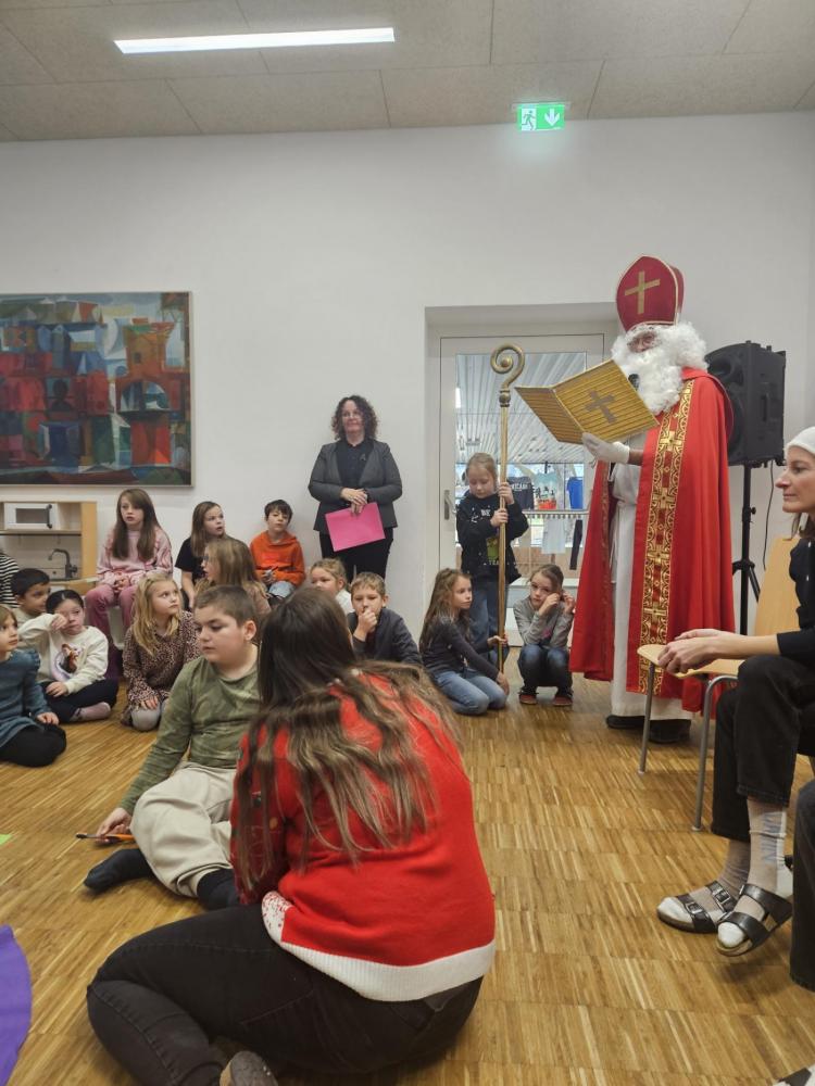 Heute fand an unserer Schule die traditionelle Nikolausfeier statt. Gemeinsam sangen wir bekannte Advents- und Nikolauslieder, hörten eine kurze Geschichte zum Adventskranz und erlebten viele schöne musikalische Beiträge der Kinder und Lehrer:innen. Ein besonderes Highlight war natürlich der Besuch des Nikolaus, der die Kinder begrüßte, mit ihnen sprach und eine Geschichte vorlas. Zum Abschluss gab die Verteilung der kleinen Nikolausgeschenke. Eine stimmungsvolle Feier, die uns alle auf die Adventszeit eingestimmt hat.