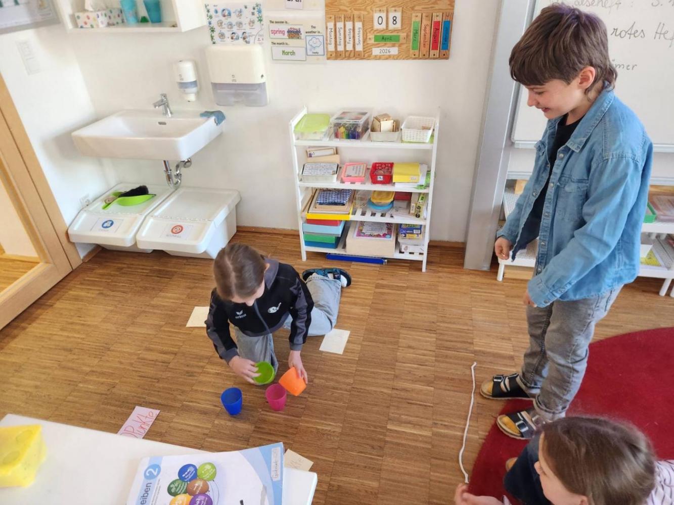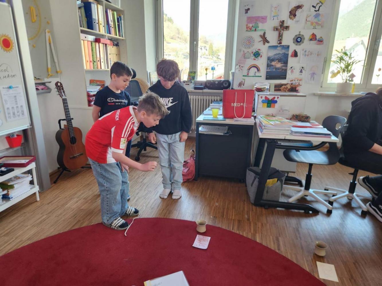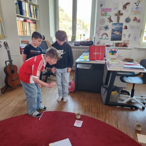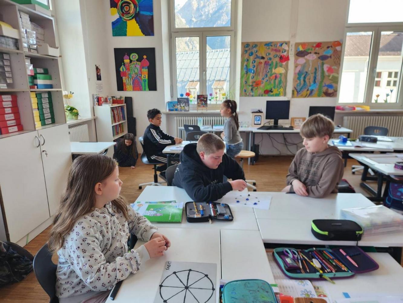 Die Kinder waren sehr interessiert an der Geschichte unseres Bezirkes und ihren Vorfahren. Das Leben der Räter und ihrer Kinder, die Lebensweise der Römer, die das Land eroberten, ihre Erfindungen, Bauweisen, Straßen und die lateinische Schrift kennenzulernen, war spannend. Die Kinder stellten viele verschiedene Fragen und diskutierten über frühere Zeiten. Der Beruf der Archäologin begeisterte alle sehr. Mit Freude bastelten alle Schmuckarmbänder und probierten einfache Spiel aus der Zeit der Räter aus.