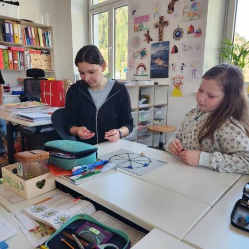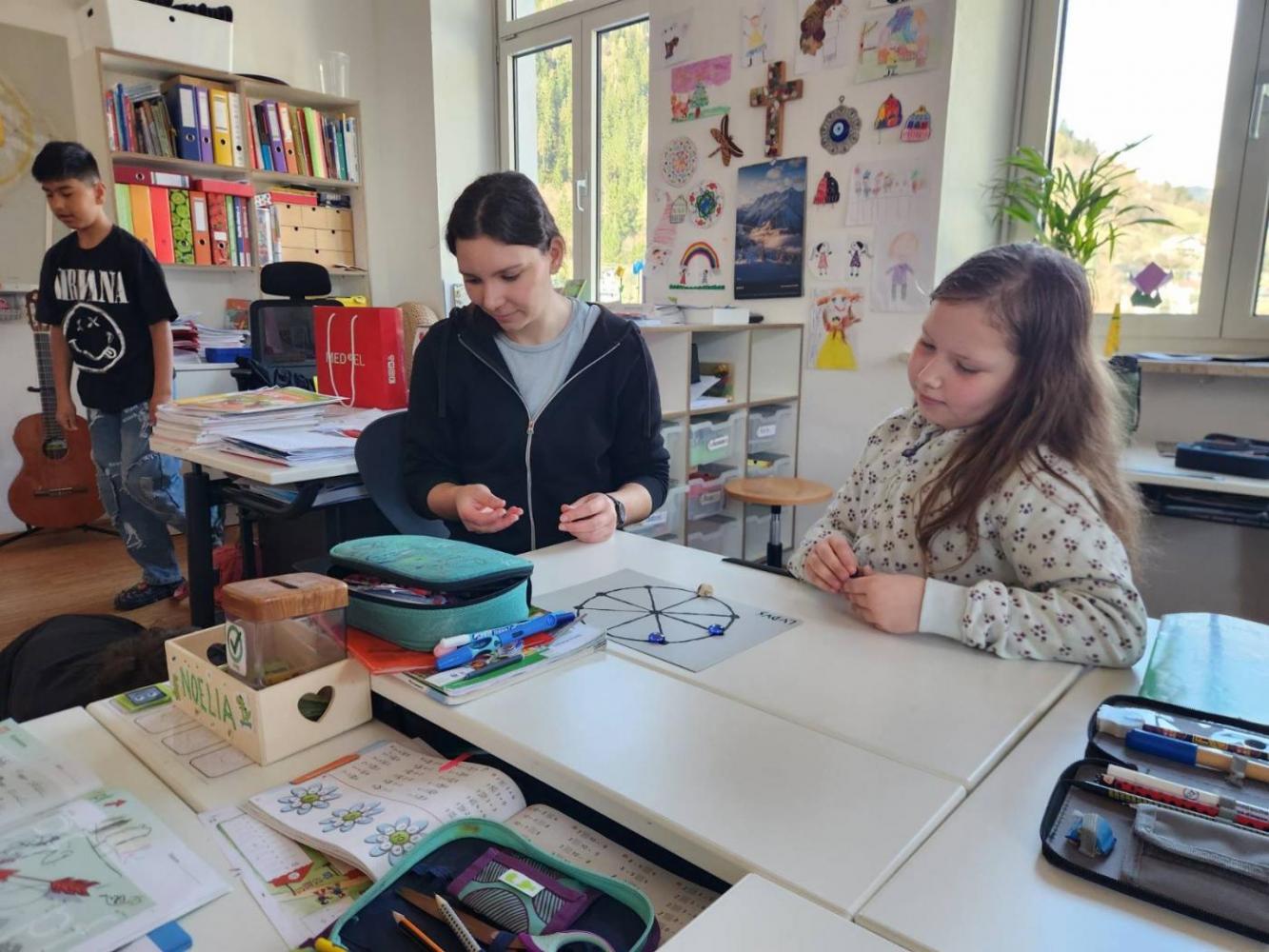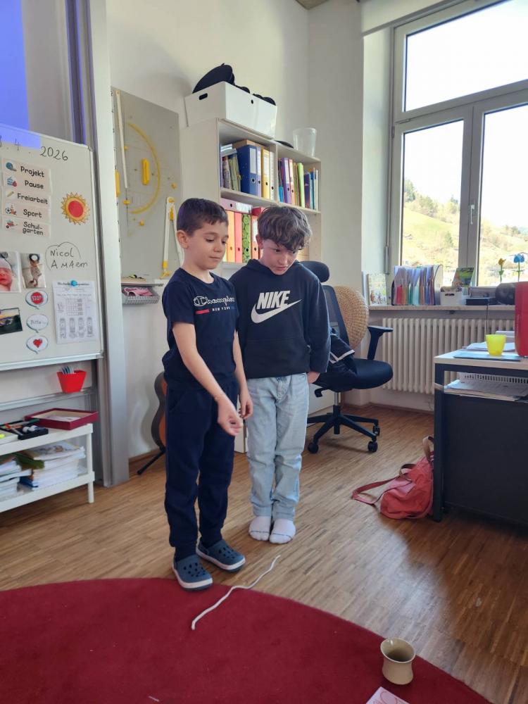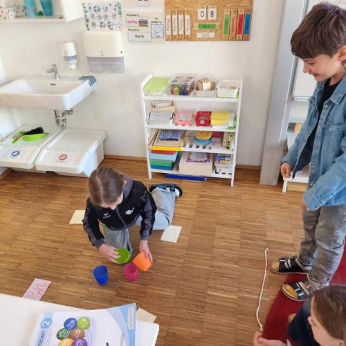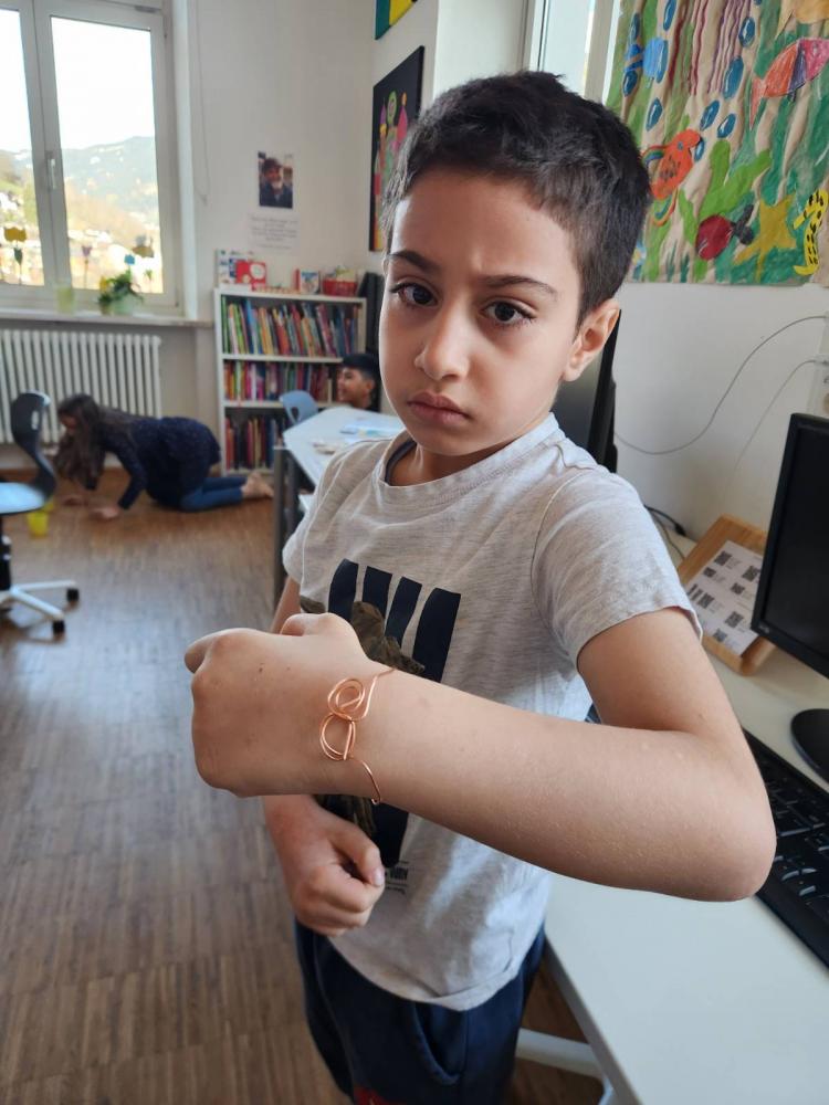 Die Kinder waren sehr interessiert an der Geschichte unseres Bezirkes und ihren Vorfahren. Das Leben der Räter und ihrer Kinder, die Lebensweise der Römer, die das Land eroberten, ihre Erfindungen, Bauweisen, Straßen und die lateinische Schrift kennenzulernen, war spannend. Die Kinder stellten viele verschiedene Fragen und diskutierten über frühere Zeiten. Der Beruf der Archäologin begeisterte alle sehr. Mit Freude bastelten alle Schmuckarmbänder und probierten einfache Spiel aus der Zeit der Räter aus.