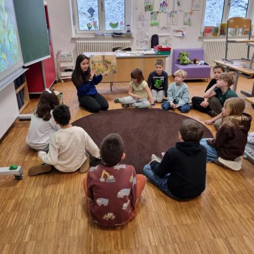 Im Rahmen des diesjährigen Vorlesetages verwandelte sich unsere Schule in ein lebendiges Lesekino. Insgesamt 15 Lehrerinnen und Lehrer präsentierten in verschiedenen Räumen ausgewählte Bücher und luden die Schülerinnen und Schüler zum Zuhören ein. Die Schülerinnen und Schüler wurden per Los eingeteilt, sodass alle Kinder die Chance hatten, neue und vielleicht unerwartete Geschichten kennenzulernen. Die Aktion sorgte für große Begeisterung und förderte die Freude am Lesen auf besondere Weise.