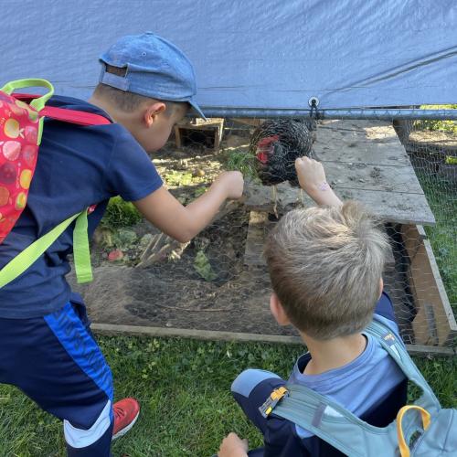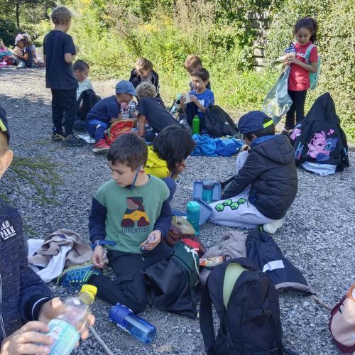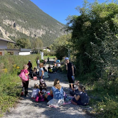 Wandertag 1a und 2a von Gabriele Bock 23. September 2025 1a 2a 2025/26 Gemeinsam unternahmen die 1a Klasse und die 2a Klasse den Herbst-Wandertag. Bei sonnigem Wetter wanderten wir von Starkenbach nach Mils. Interessant war auch der Besuch bei den Seidenhühnern von Sarah’s Bruder.